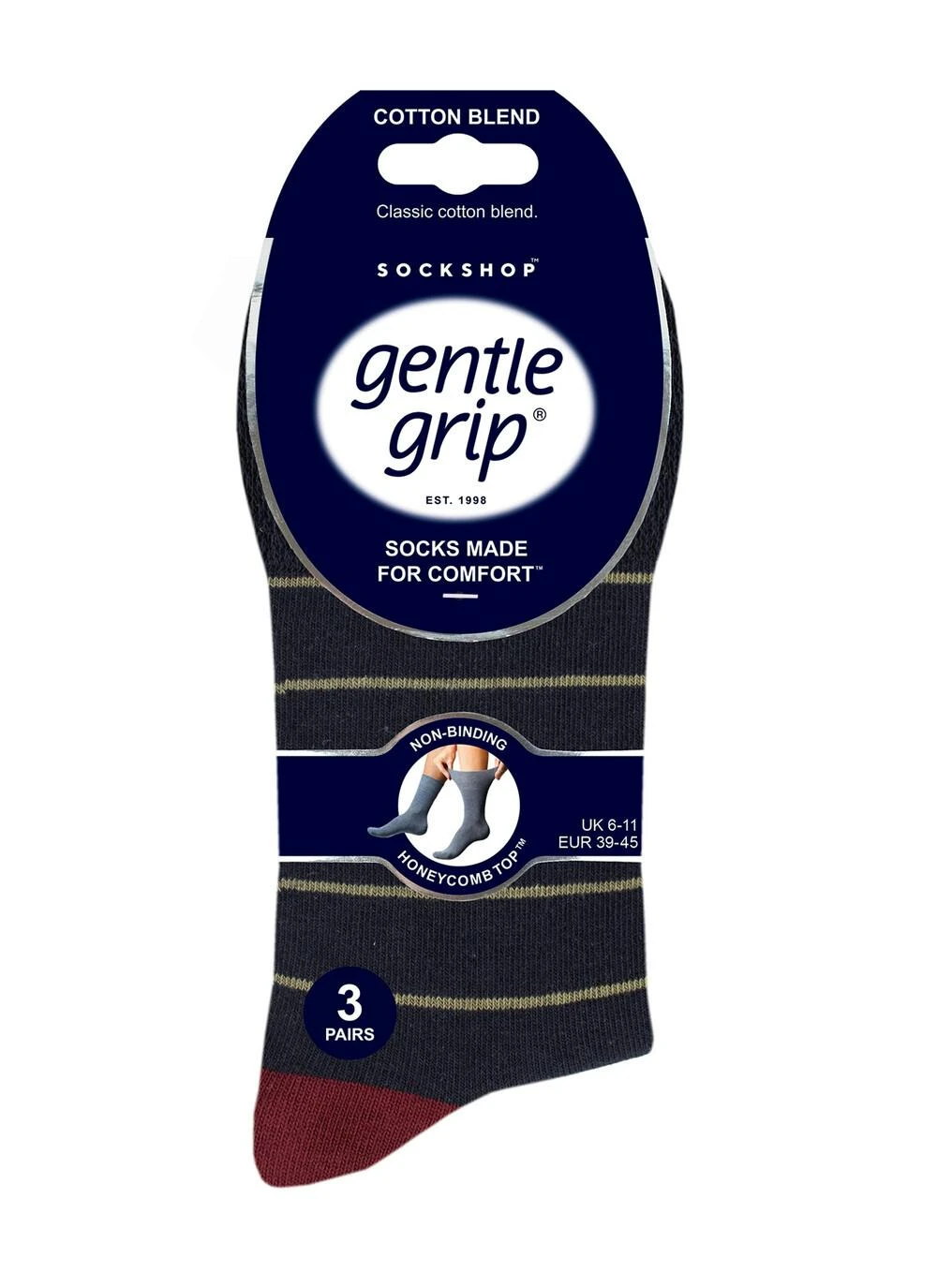 Gentle Grip socks are made for comfort. The non-binding honeycomb top gently moulds to the natural contours of your legs avoiding restriction and compression marks whilst the strengthened heel and toe enhances durability. Made from soft cotton rich yarns for fresh natural comfort.