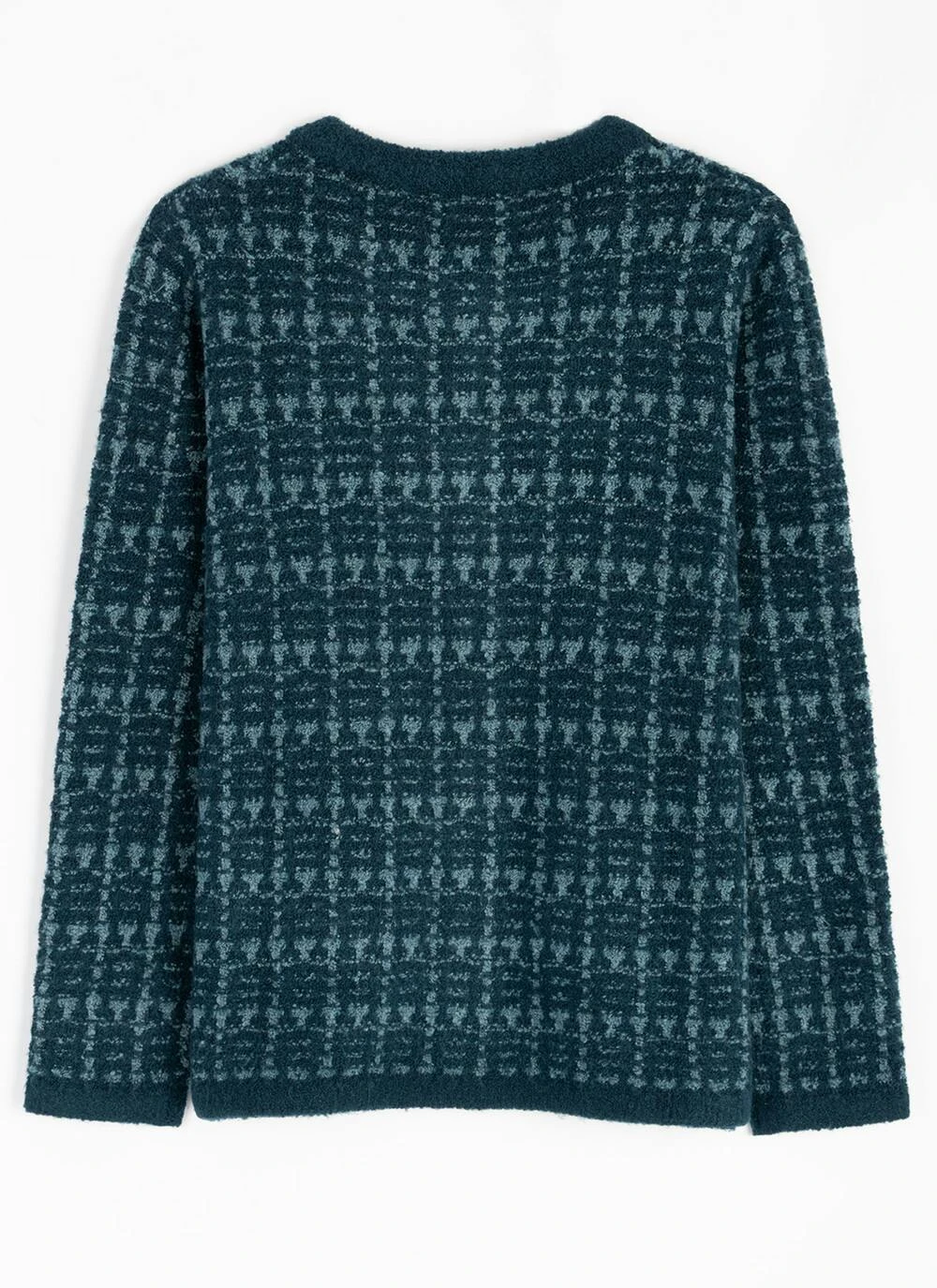 Button up round neck cardigan with long sleeves and two functioning front pockets with button detailing and a checkerboard knit pattern. Team with Honor Millburn Collection trousers and skirts for a lovely fresh look for the new season.