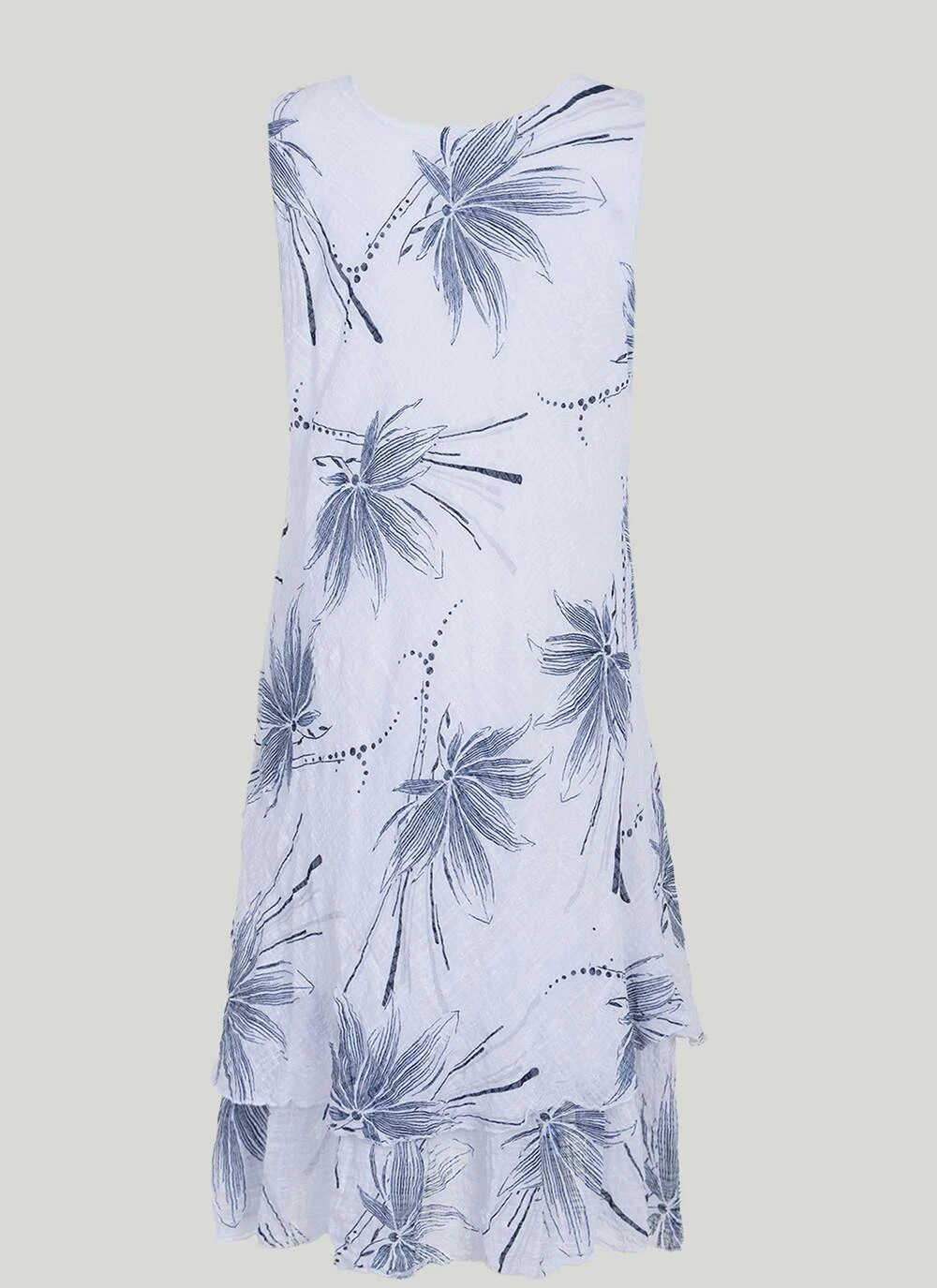 Introducing the ultimate Summer dress. An easy fit and crafted from a textured cotton-viscose, makes this all-day comfortable. The tiered skirt and soft gathers create just the right amount of movement, with the linear floral print adding a stylish edge.