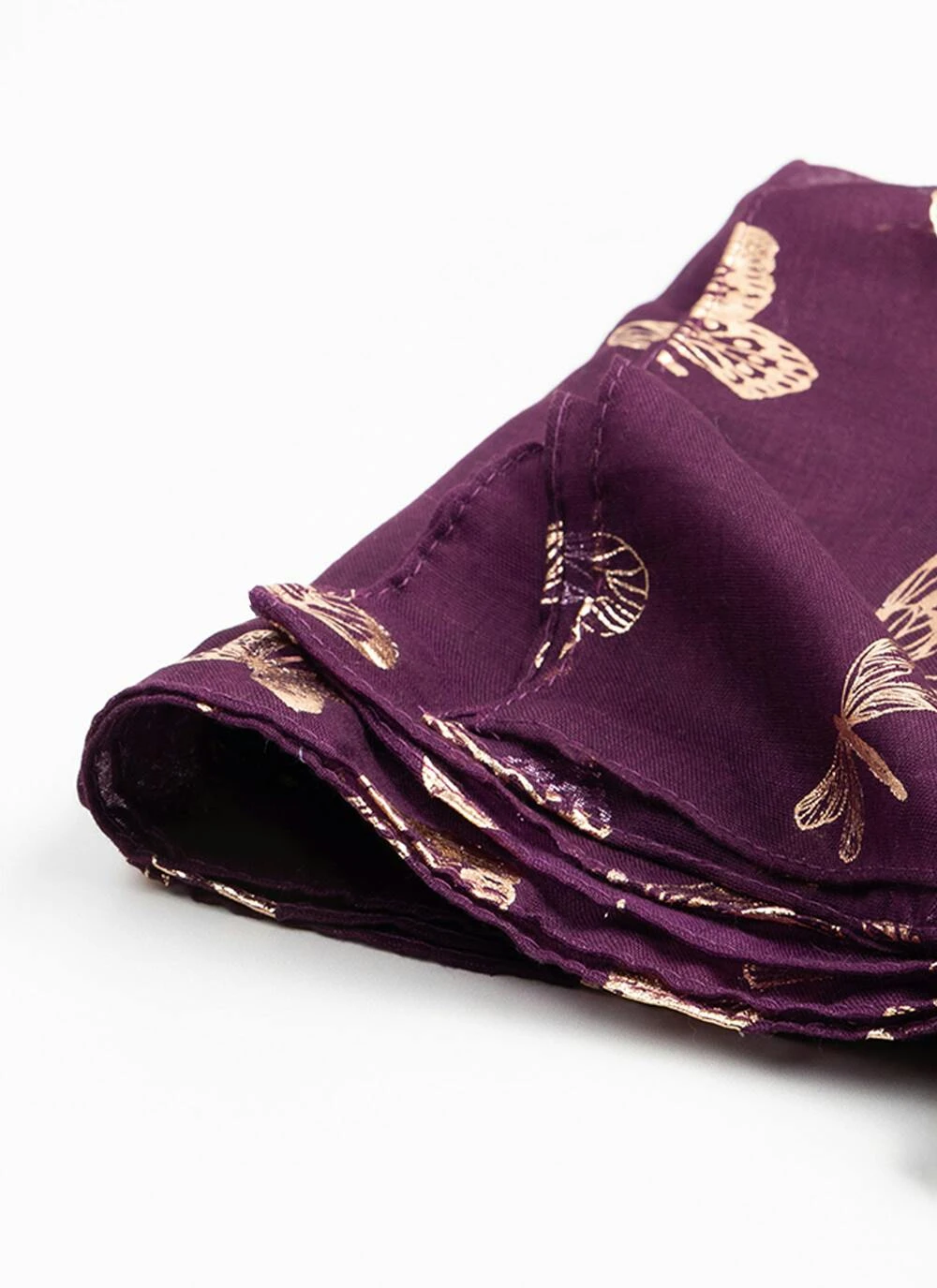 Accessorise your outfit in style with this lightweight scarf featuring a delicate shimmering foil print.