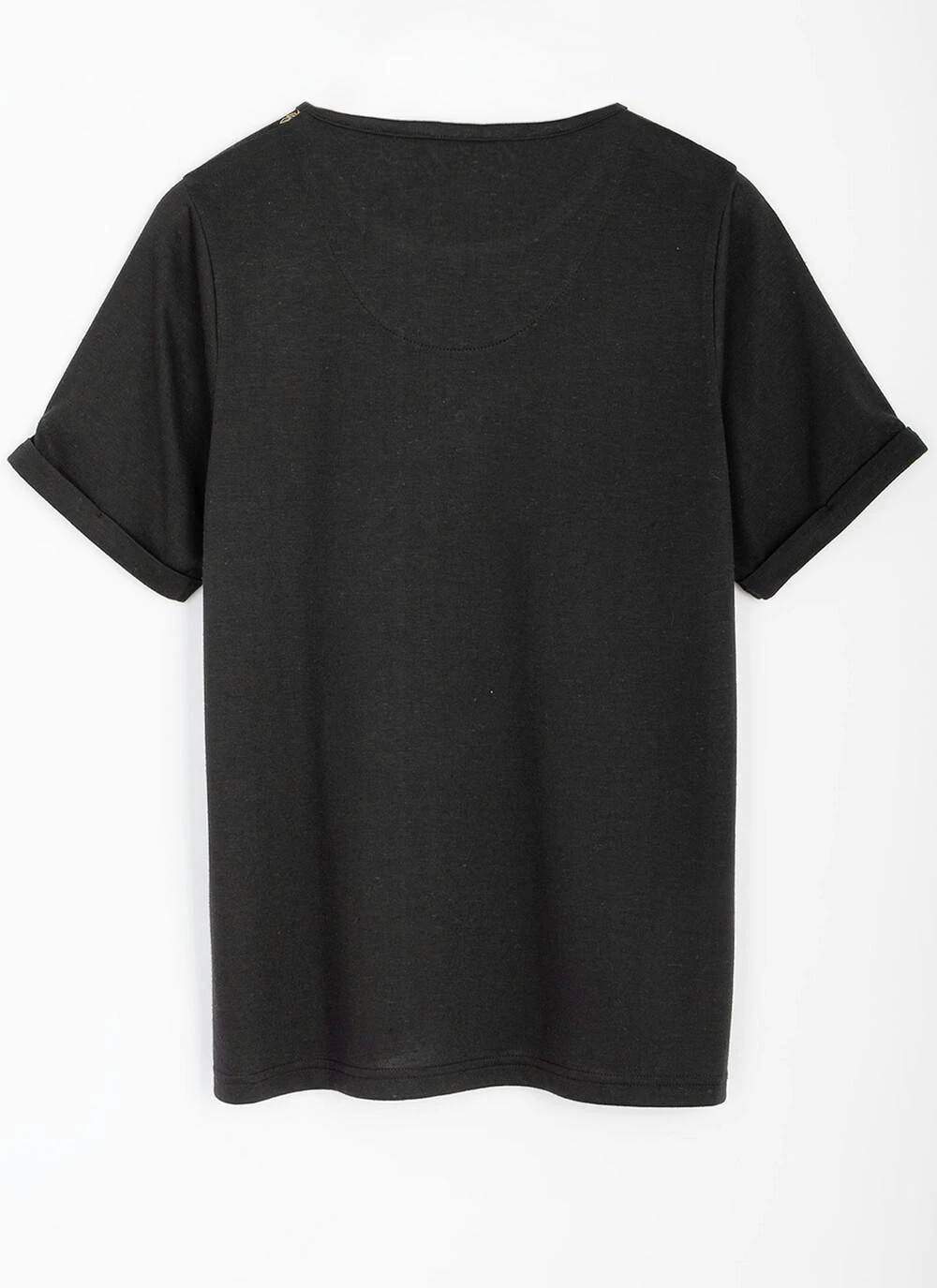 Add some sparkle to your summer wardrobe in this all over embellished palm tree t-shirt by Isle. Made from a linen blend and designed to flatter, wear with crops or a skirt for a stylish weekend look.