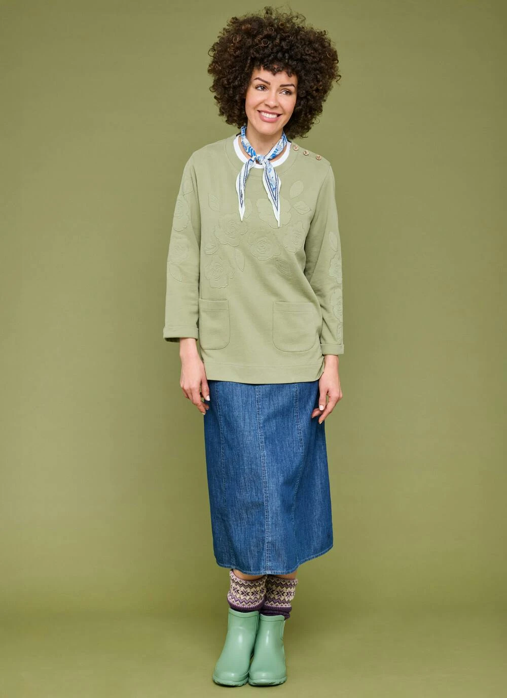 Add a playful twist to your casual wardrobe with the Pure Cotton Appliqué Sweatshirt. Crafted from soft, breathable cotton, this cozy layer features charming appliqué detailing that brings a touch of handcrafted personality to your look. The relaxed fit and easy crew neckline make it a go-to piece for off-duty days. Style it with your favourite jeans or over a midi skirt for a chic look.