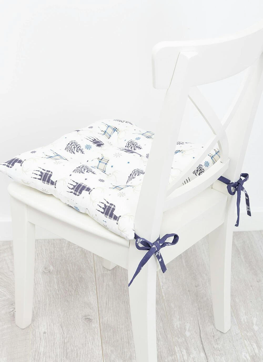 The winter woodland inspired stag print design brings a touch of contemporary cool to this seat pad. Padded for comfort and comes with ties to secure in place. Made from 100% cotton for easy care and durability. 40cm x 40cm. Co-ordinating items are available.