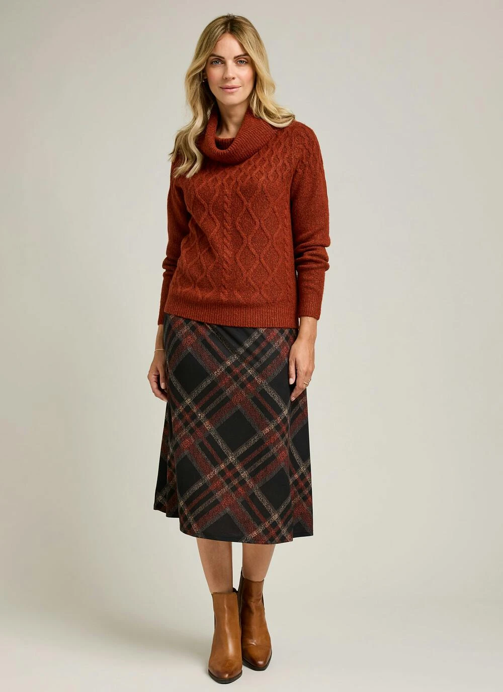 Classic checks meet cosy comfort in the Warm Handle Checked Midi Skirt. Crafted from a soft-touch, warm-handle fabric, this skirt features a timeless check pattern and a flattering midi length—perfect for seasonal styling. The gentle A-line silhouette offers easy movement, while a comfortable waistband ensures all-day wearability. Pair with chunky knits or tailored tops for a versatile autumn look with heritage charm.