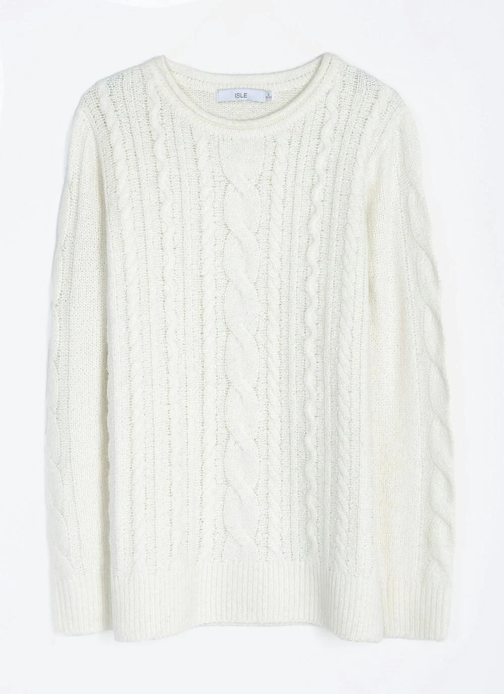Designed in a cosy yarn to keep you warm this season, this wool blend jumper by Isle perfect for layering. Designed with a classic crew neck in a regular fit for your comfort. Finished with a flattering cable knit design, layer up and style with your favourite jeans or jeggings.
