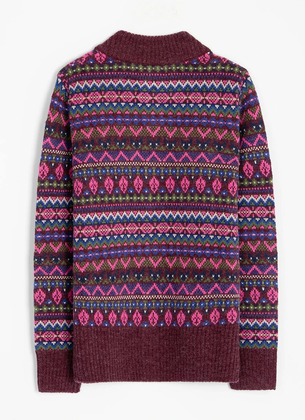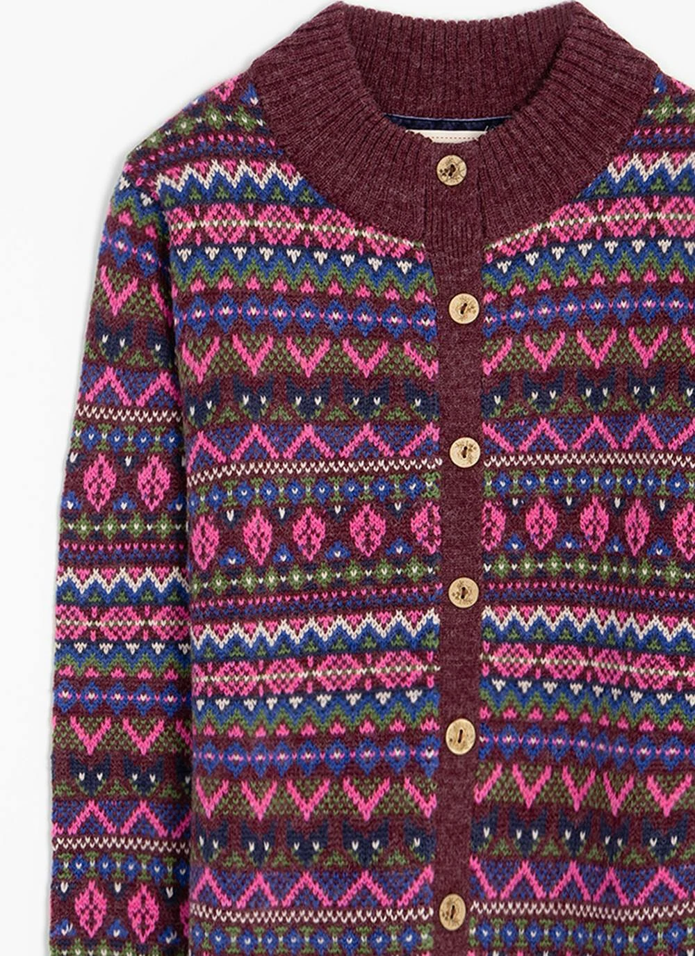 Wrap yourself in warmth and tradition with the Wool Blend Fair Isle Funnel Neck Cardigan. This cozy knit is crafted from a soft wool blend and features a striking FairIsle design. The funnel neckline and zip-through front offer extra insulation, while ribbed trims provide a snug, stylish finish. Designed in a relaxed fit, its perfect for layering on crisp autumn and winter days.